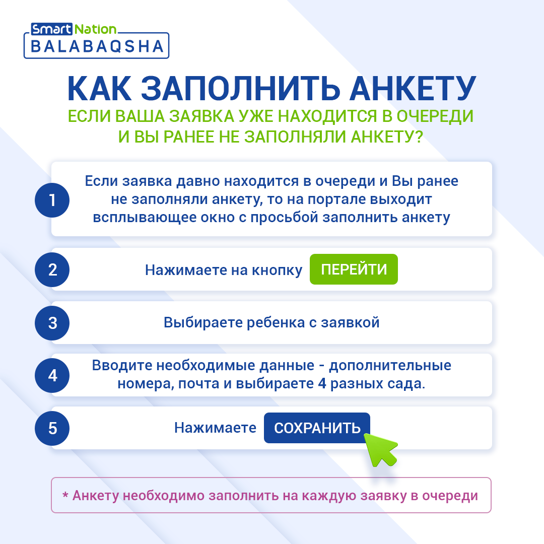Анкета заполняется на сайте balabaqsha.snation.kz.